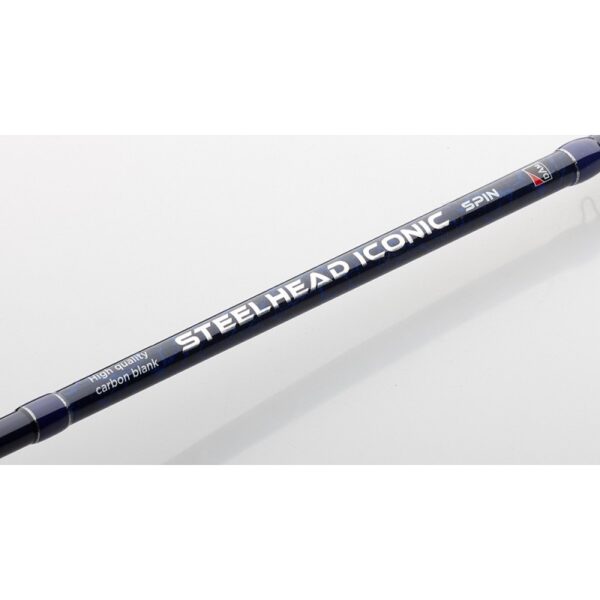 Wędka DAM Steelhead Iconic Spin posiada bardzo smukły i mocny blank węglowy wykonany z włókna węglowego 24T. Wędkę cechuje niewielka waga i zastosowanie wysokiej jakości komponentów, takich jak przelotki SiC oraz ergonomiczne mocowanie kołowrotka Touch Blank. Wędka jest bardzo dobrze wyważona i doskonale leży w dłoni, dzięki zastosowaniu korkowej rękojeści. Pokrowiec w zestawie.