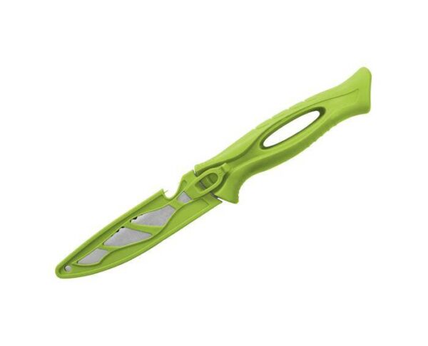 Wszechstronny nóż B-MINI z kombinowanym ostrzem. Można nim ciąć, piłować (ponieważ w górnej części znajdują się ząbki), rozebrać kabel lub nawet otworzyć piwo. Aby zmniejszyć wagę, rękojeść z tworzywa sztucznego zabiera większą część. Nóż znajduje się w poręcznym plastikowym etui, które jest bezpiecznie zatrzaśnięte na ostrzu.