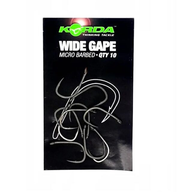 Wysokiej jakości haczyki karpiowe z zadziorem firmy Korda z serii Wide Gape. Są to chyba jedne z najbardziej rozpoznawalnych haków dostępnych na rynku karpiowym. Niesamowicie ostre, a przede wszystkim wytrzymałe. Posiadają oczko wygięte do wewnątrz, okrągły łuk kolankowy i długi prosty trzonek. Czyni je to bardzo agresywnymi hakami, które bardzo dobrze zapinają ryby, ale przede wszystkim mocno je trzymają. Pokryte zostały antyrefleksyjną powłoką, która nie odbija promieni słonecznych. Haki te idealnie nadają się do przyponów typu Blow Back Rig, Ronnie Rig i wiele, wiele innych.