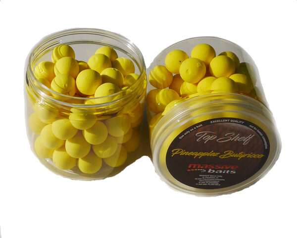 Pływające przynęty, które zostały ręcznie wykonane z najwyższej jakości mieszanki. Posiadają bogatą dawkę płynnych i sproszkowanych aromatów. Ich cechą charakterystyczną jest duża, stabilna wyporność, która potrafi utrzymać podwieszona kulkę tonącą lub ciężki zestaw typu Chod przez wiele godzin w odpowiedniej pozycji. Ananas w połączeniu z kwasem masłowym.