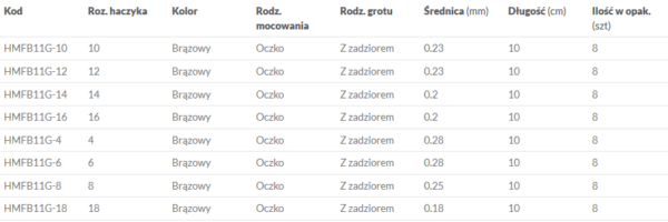 Najwyżej klasy przypony dedykowane do łowienia z podajnikiem zanętowym. Super mocna żyłka oraz piekielnie ostre i wytrzymałe haki gwarantują, że z każdej walki wyjdziesz zwycięsko. HMFB11G – haczyk do metody z gumką.